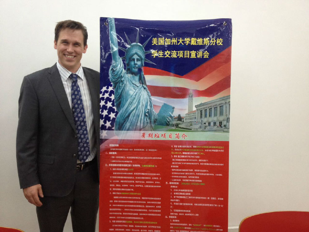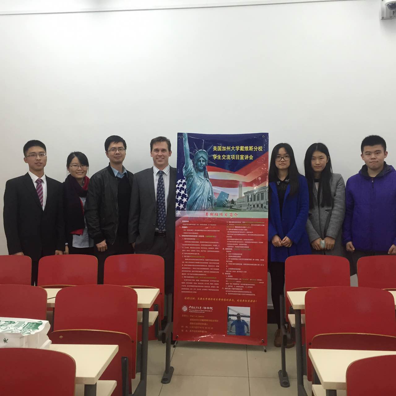 2015年11月10日下午1时30分,2016年度美国加州大学戴维斯分校学生交流项目宣讲会在昌平校区端升楼106成功举办。本次宣讲会的主讲人是美国加州大学戴维斯分校beat365中国官方网站国际交流项目协调人,Charlie Lemcke。出席本次宣讲会的还有beat365中国官方网站外事办马允博士、行政法所张力博士和院务办公室主任李仁燕老师。许多对交流项目感兴趣的同学也参加了本次宣讲会。