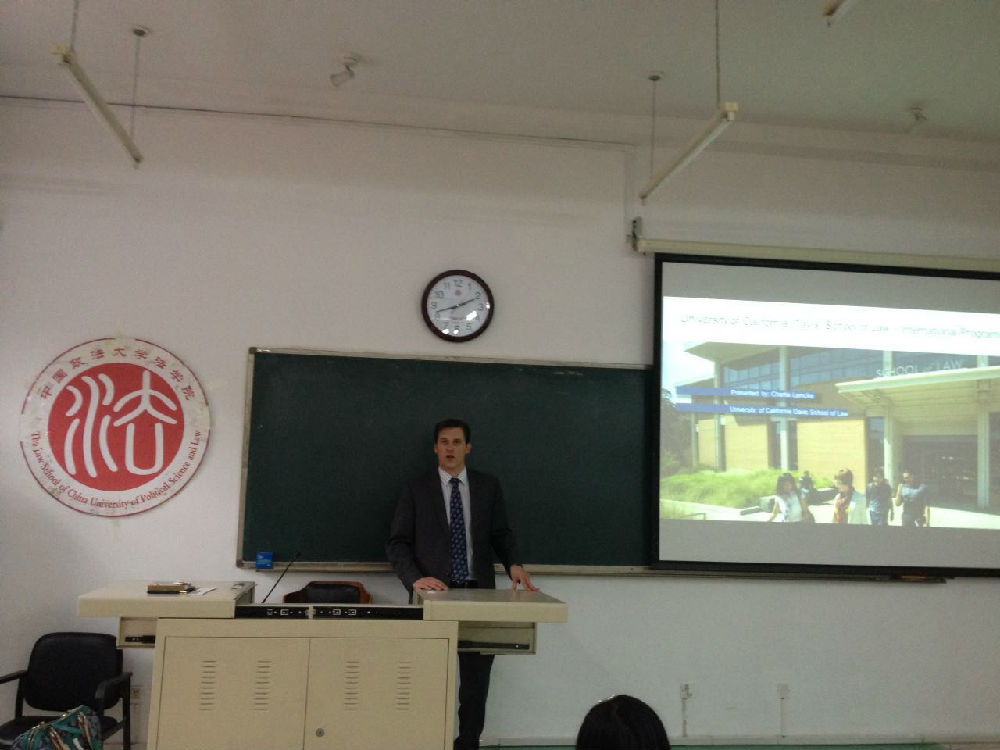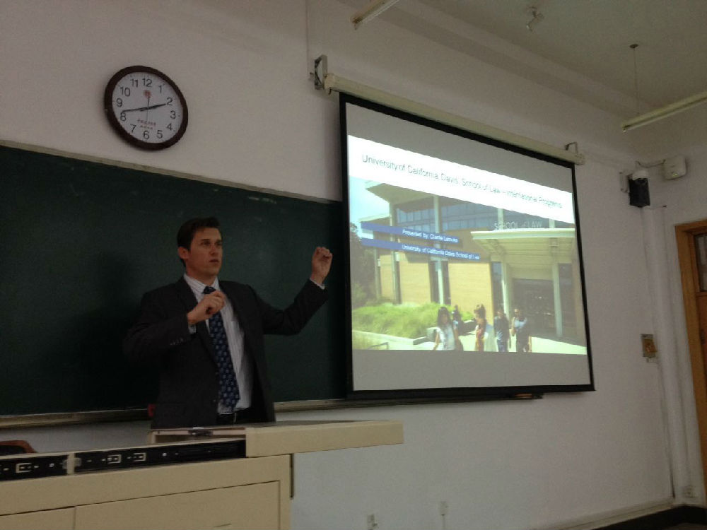 接着,Charlie Lemcke则对此次交流项目进行了十分的细致的讲解和说明。他首先介绍了加州大学戴维斯分校的具体情况,包括学校招生情况、学科专业设置、师资力量以及校园环境等内容,使同学们对加州大学戴维斯分校有了初步的了解。其次,Charlie Lemcke详细介绍了交流项目的具体情况。他按照时间顺序,仔细介绍了为期三周的交流项目中每天的日程安排。他指出,本次交流项目不仅包括在戴加州大学维斯分校的学习内容,还安排了丰富多彩的游玩活动,帮助同学们更好地了解美国文化。最后,Charlie Lemcke表示戴维斯分校与我校已合作多年,学生间的交流项目也日渐成熟和完备,他衷心地欢迎更多的法大学子能够到戴维斯分校学习交流。
