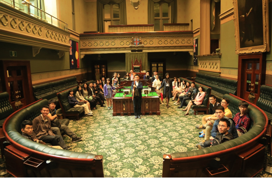 随后访学团参观并体验新南威尔士高级法院和议会,由新南威尔士出庭律师和法院法官的全程陪同讲解,旁听了高级法院的审判过程,切实体会了澳大利亚的司法系统和立法系统。