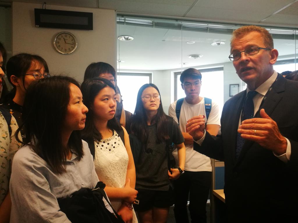 此外,学生们还参观了帕拉马塔市的当地法院以及家庭法院,了解到了澳大利亚州法院体系以及联邦法院体系的双重存在以及之间的区别和不同。别具一格的家事法庭给学生们留下深刻的印象。这个家事法庭是1976年成立的,柔和的色彩与灯光,尽量带给人们平和的感觉,旨在告诉人们这里的法庭并不展现其威严,仅仅是解决问题的地方。这个家事法庭有7名法官,60个工作人员,有4个法律援助的律师在网上提供帮助,且有一套完整的机制给家庭和孩子以帮助。再有一切从孩子的立场出发,在介绍中不断地强调保护孩子免受家庭破裂带给他们带来的伤害,给学生们做介绍的Paul告诉大家,孩子还可以单独有律师,作为他们的代理人,独立于其父母的代理律师。当程老师问及是否澳大利亚的法官在处理离婚案件时是否也要多做调解工作,Paul连连摇头,他说澳大利亚更注重自由、独立,法官判案主要是解决夫妻财产的分割和孩子非抚养权问题,这与我国的婚姻理念的确不相同。