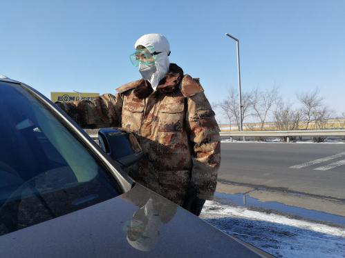 孟祥瑞同志在黑龙江大庆市龙凤区大广高速公路卡口疫情监测点,负责来往车辆信息备案、出行人员体温测量工作。(相关报道见