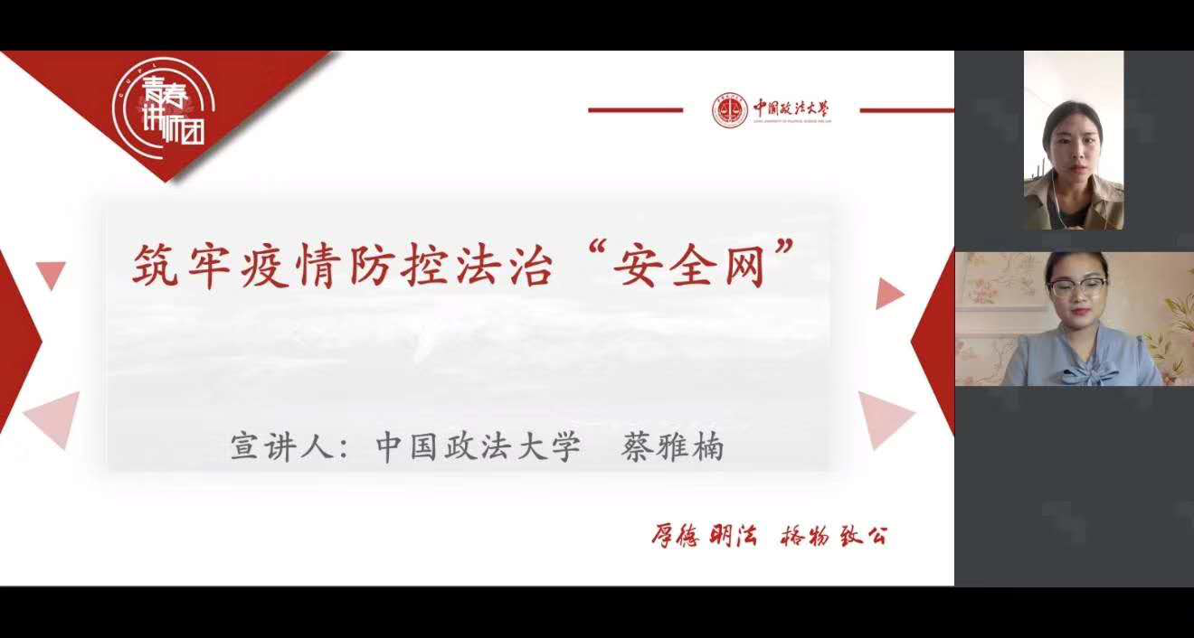 蔡雅楠同志代表beat365中国官方网站参加六大高校联合抗疫志愿宣讲,作为“青春讲师团”讲师,围绕“筑牢疫情防控法治‘安全网’”主题与大家一同进行交流分享。