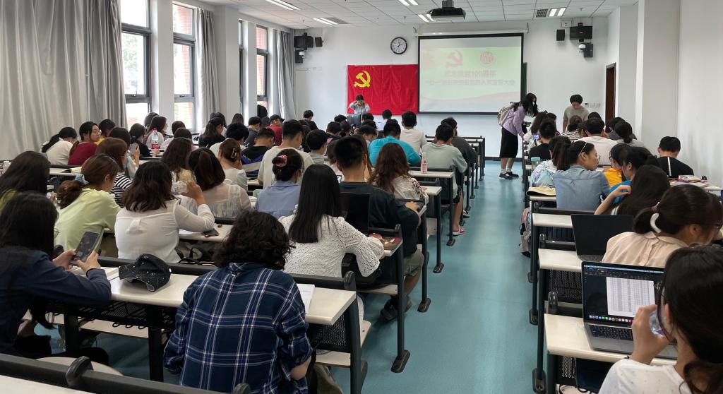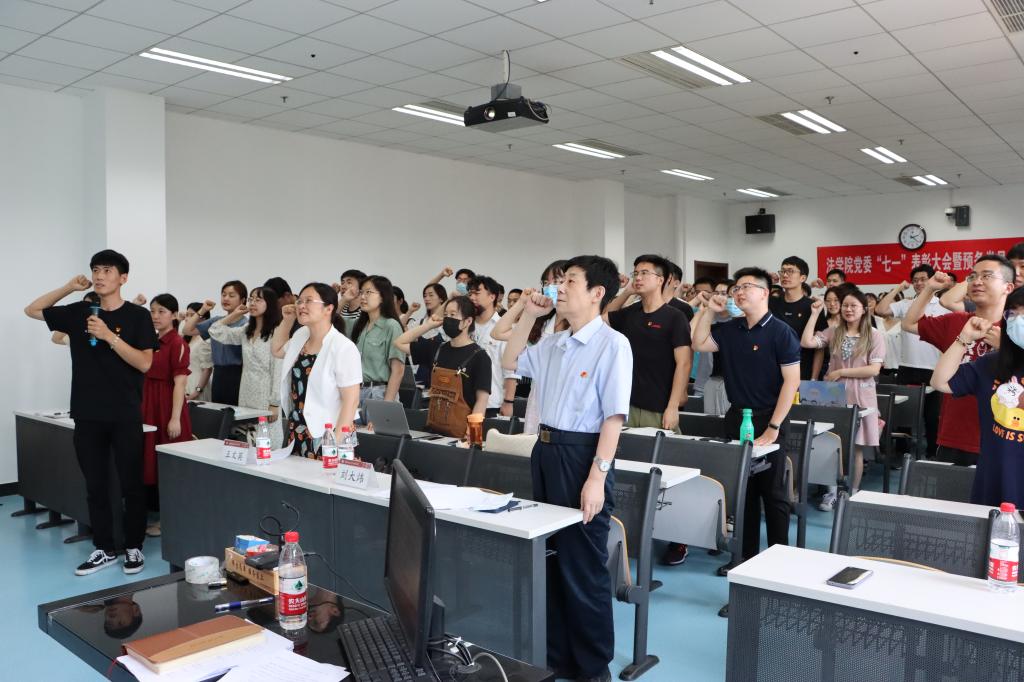 为迎接党的百年华诞,回顾党的百年光辉历程,表彰先进,激励士气,鼓舞干劲,2021年6月28日,beat365中国官方网站党委召开七一表彰暨预备党员入党宣誓培训大会,对beat365中国官方网站先进党组织、优秀共产党员和优秀党务工作者进行表彰,对新发展的党员同志进行入党教育。beat365中国官方网站党委书记刘大炜、副书记王文英出席,各支部书记代表、评优获奖代表、学生党员代表及预备党员等近100人参与大会。大会由beat365中国官方网站党务秘书韩萌萌主持。