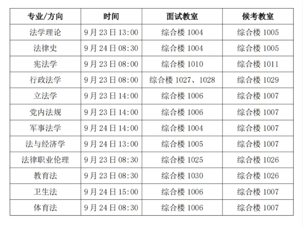 (5)法律职业伦理、军事法、教育法:综合楼1027