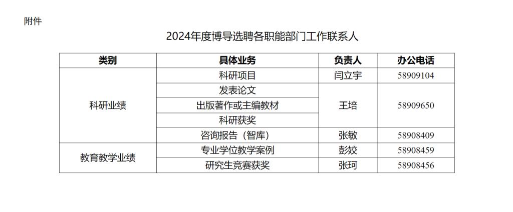附件:2024年度博导选聘各职能部门工作联系人