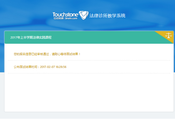 6、如果该生的报名信息“审核通过“且该课程需要面试,而学生“未面试”或“已面试未通知结果”,登录后则显示以下页面。