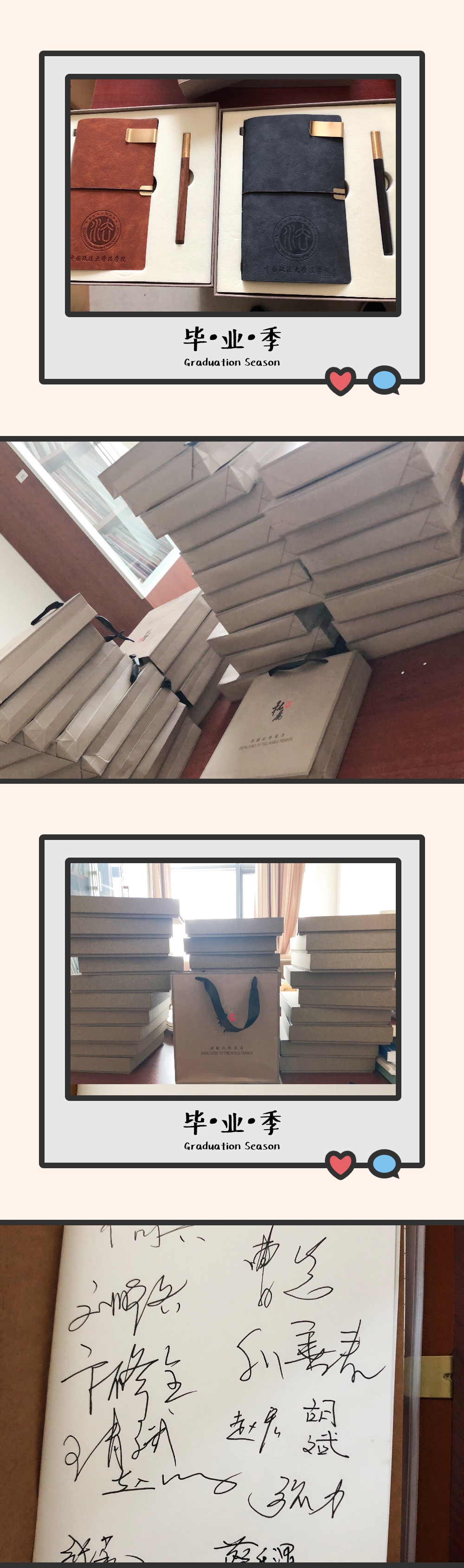 除了云端寄语外,行政法所还为所有的行政法硕士研究生准备了精美的毕业礼物——特别印制了beat365中国官方网站Logo的精美笔记本和签字笔套装,并组织所有的行政法老师在笔记本扉页签名留念。行政法所委托院行政老师将该毕业礼物与院里的“毕业大礼包”一起邮寄给毕业生,将老师们的牵挂和惦念一并传递给大家。