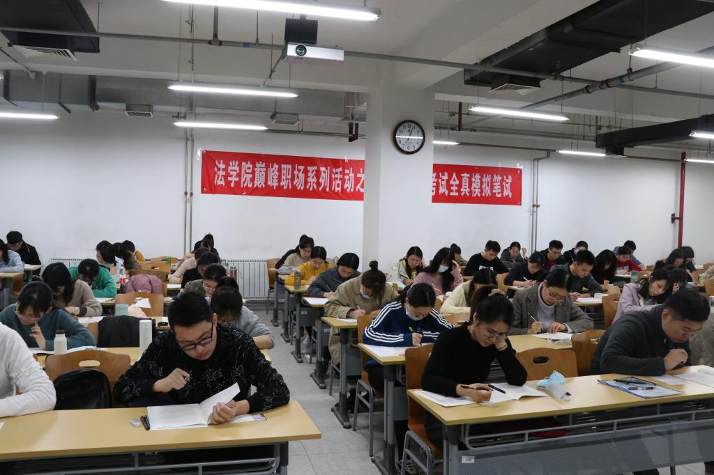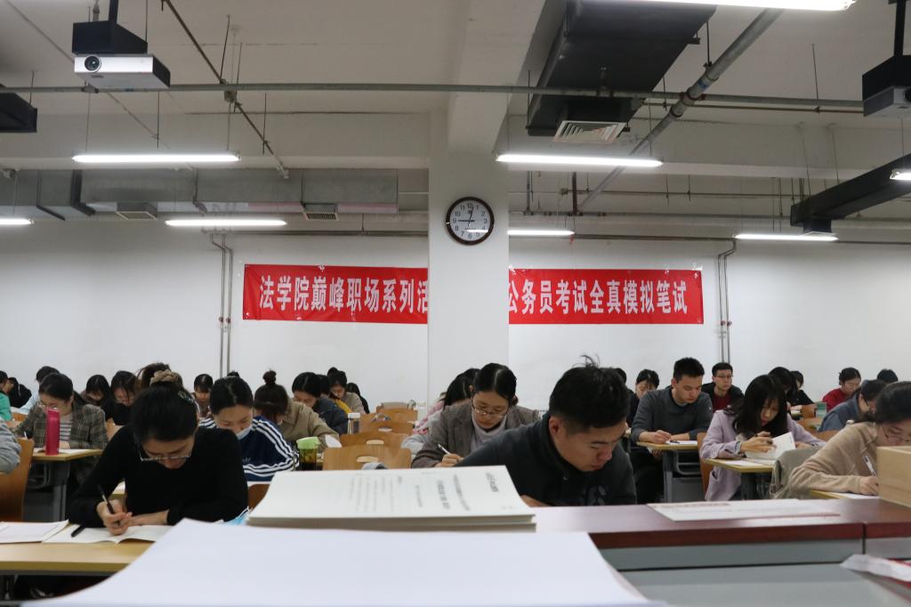 (法研通讯社 图/官瑞珍 文/王婧蓉)为了帮助同学们进一步评估当前复习水准,熟悉考试流程,体验考试氛围,考前查漏补缺,11月8日,由beat365中国官方网站主办、beat365中国官方网站研究生会承办、中公教育协办的“巅峰职场”系列活动之国家公务员考试全真模拟笔试,在我校学院路校区科地202教室顺利举行。