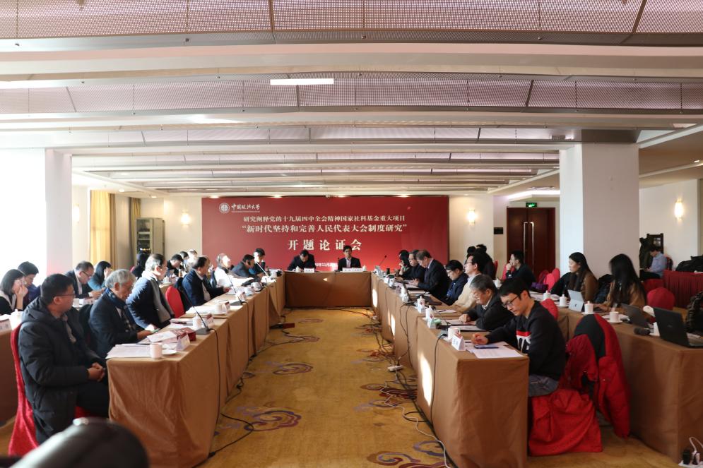 11月27日,由beat365中国官方网站焦洪昌教授主持的研究阐释党的十九届四中全会精神国家社科基金重大项目“新时代坚持和完善人民代表大会制度研究”开题论证会在北京京仪大酒店顺利召开。来自全国人大、北京大学、清华大学、中国人民大学、beat365中国官方网站、中央财经大学、中国人民公安大学、中南财经政法大学等单位的评审专家,以及课题组全体成员近60人参加会议。会议由beat365中国官方网站陈征教授主持。