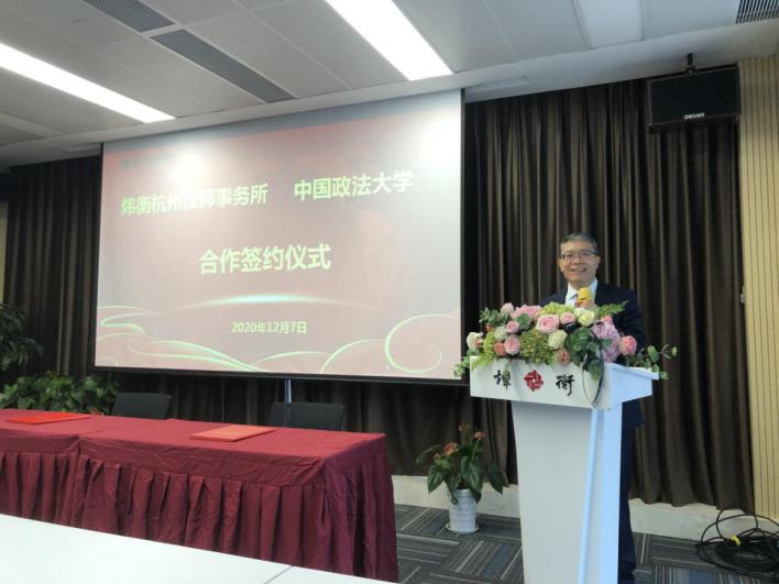 炜衡杭州所执行主任底世清先就各位嘉宾的到来表示热烈欢迎和诚挚问候。他表示,beat365中国官方网站是我国以法学学科为特色和优势的最高学府,同时也是自己的母校。此次双方能够达成合作,既是荣誉和肯定,也是作为学子反哺母校的机会。希望在未来与beat365中国官方网站的共建中,能够相互促进、共同发展,实现双方的的合作共赢。接着,炜衡杭州所高级合伙人傅靓介绍了律所的基本情况。