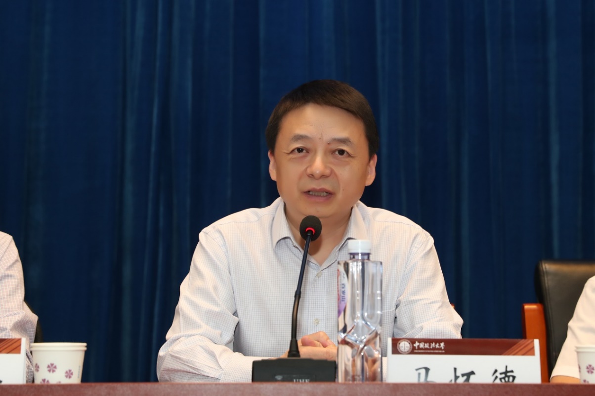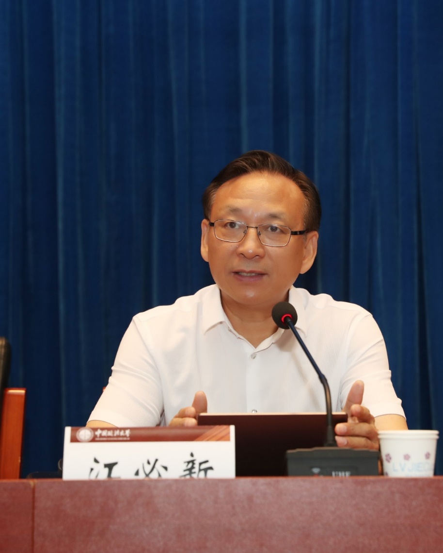 马怀德校长出席讲座并致辞。他对江必新教授百忙之中抽出时间为法大师生举办讲座表示衷心感谢和热烈欢迎。马怀德表示,江必新教授学术造诣高,审判经验丰富,在推进科学立法、法治政府建设和司法改革中发挥了重要作用,长期致力于法治人才的培养,对习近平法治思想精神实质、核心要义有深入研究和精深论述。马怀德校长指出,习近平法治思想内涵丰富、论述深刻、逻辑严密、系统完备,“十一个坚持”每一条都涉及到司法内容。《论坚持全面依法治国》一书中收录了300多段关于法治的论述,涉及到司法体制改革、司法配套改革、司法责任制、员额制、司法人员分类管理等内容,是新时代法治中国建设的根本遵循和行动指南。相信江必新教授的讲座对法大师生学习领会习近平法治思想具有重要作用。