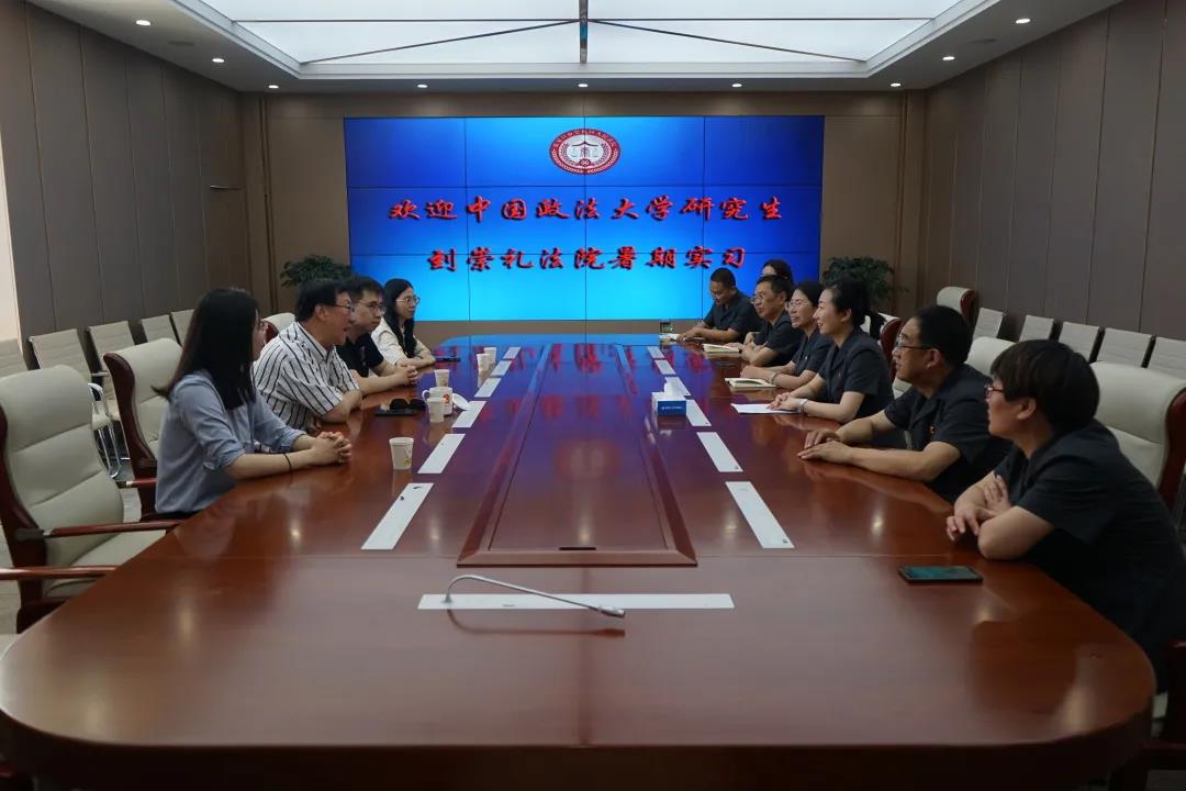 2021年6月28日上午,在张家口市崇礼区人民法院召开座谈交流会,就开展beat365中国官方网站首批研究生赴崇礼区人民法院进行暑期实习进行座谈,这是推进院校合作建立研究生联合培养基地项目的重要举措,也是落实我校专业学位实习基地建设的主要内容。beat365中国官方网站体育法治研究基地主任、原体育法研究所所长马宏俊教授,崇礼区人民法院党组书记、院长李静静,党组副书记、副院长宋启河,党组成员、政治部主任左秀桃,党组成员、专职审委会委员曹爱国,崇礼区人民法院相关部门负责人和实习生参加会议。