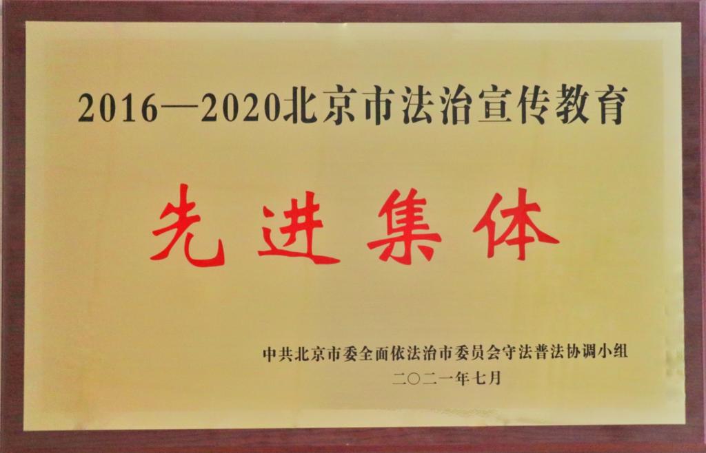近日,中共北京市委全面依法治市委员会守法普法协调小组印发《关于通报表扬北京市“七五”普法先进集体和先进个人的决定》,对2016-2020年北京市法治宣传教育工作中成绩突出的先进集体、先进个人予以表彰,我院荣获“北京市法治宣传教育先进集体”称号。