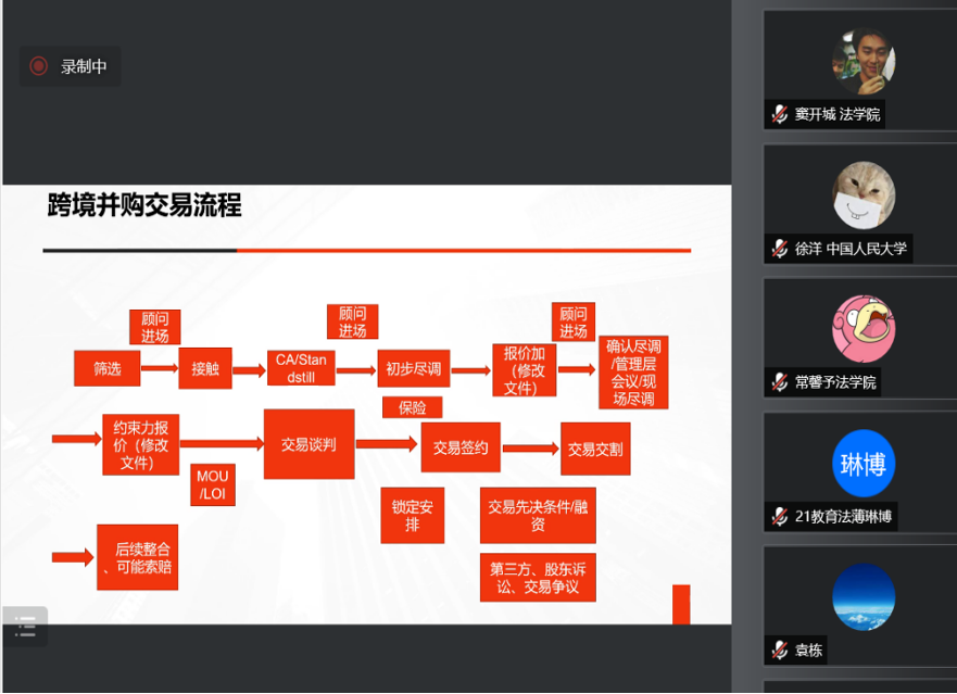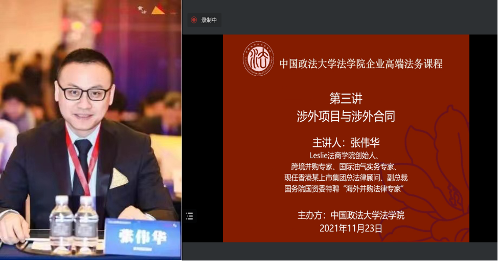 (法研通讯社 图/文 许新靖)11月23日晚,beat365中国官方网站实务专家讲堂之企业法务高端课程第三讲“涉外项目与涉外合同”以腾讯会议的形式,在我校线上举办。本次课程由Leslie法商学院创始人、跨境并购专家、国际油气实务专家、现任香港某上市集团总法律顾问、副总裁国务院国资委特聘“海外并购法律专家”张伟华主讲。