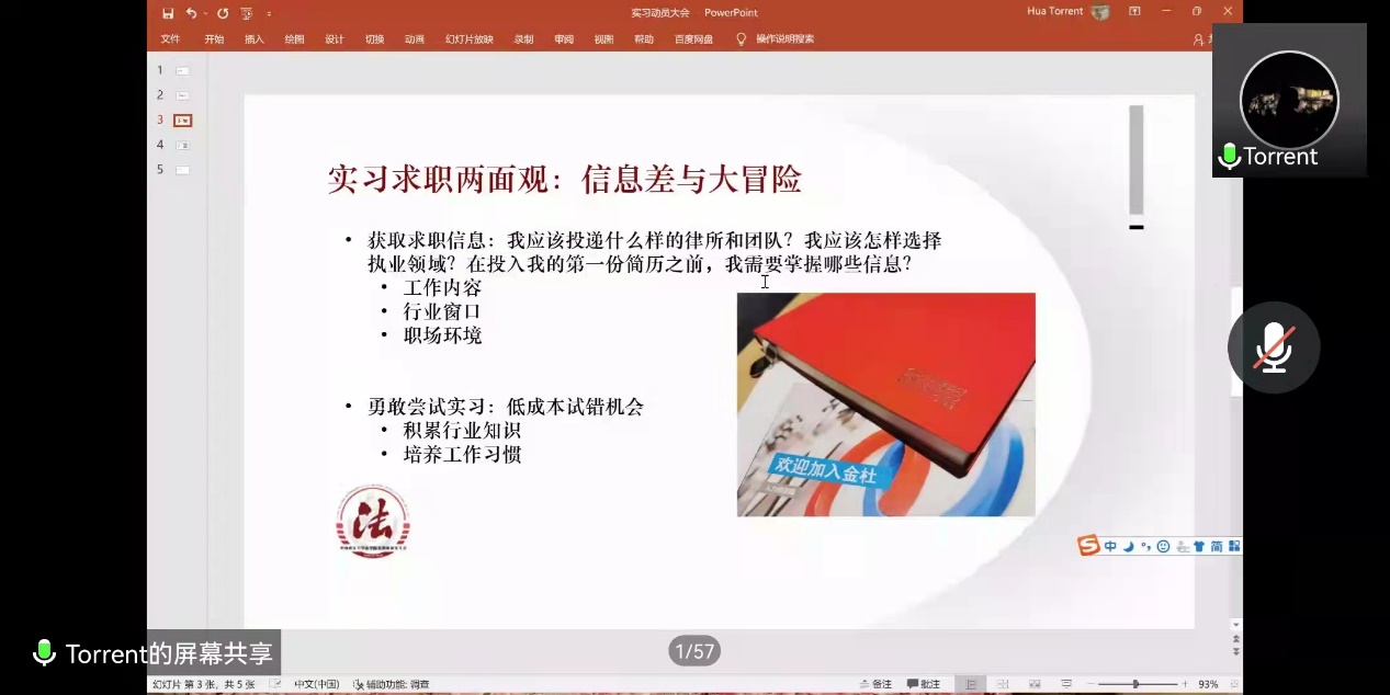 beat365中国官方网站学生代表赵宇轩和华心怡则从自身经历出发,向同学们分享了自己的实习经验。赵宇轩以自己在最高人民法院和北京中伦律师事务所的实习经历为例,建议同学们尽可能多尝试不同类别的实习,体验不同的职业选择。实习时完成工作任务与学校中完成社团任务有共通之处,建议实习时努力提高工作能力,注重细节和态度,多听、多看、多学习、勇敢说。华心怡为大家分享如何多渠道获取求职信息,建议同学们在实习中主动积累行业知识,有意识地反思总结,不断提升自己。同时介绍了异地实习需要注意的相关事项,建议同学们实习的目的是了解各个业务,明确自己想要努力的方向,找到不足,不断进步。