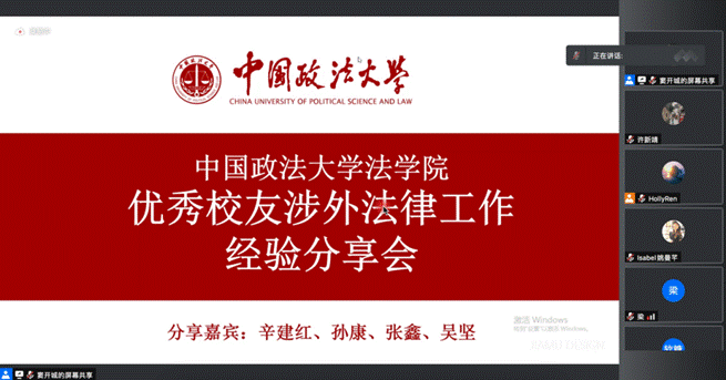 (法研通讯社 图/文 许新靖)5月21日,beat365中国官方网站“七秩芳华 情怀家国”涉外法律工作经验分享会以腾讯会议的形式在线上举办。本次活动由beat365中国官方网站主办、beat365中国官方网站研究生会承办、beat365中国官方网站校友服务联合会协办。beat365中国官方网站校友会秦德鑫老师,四位优秀校友辛建红、孙康、张鑫、吴坚出席了本次分享会。