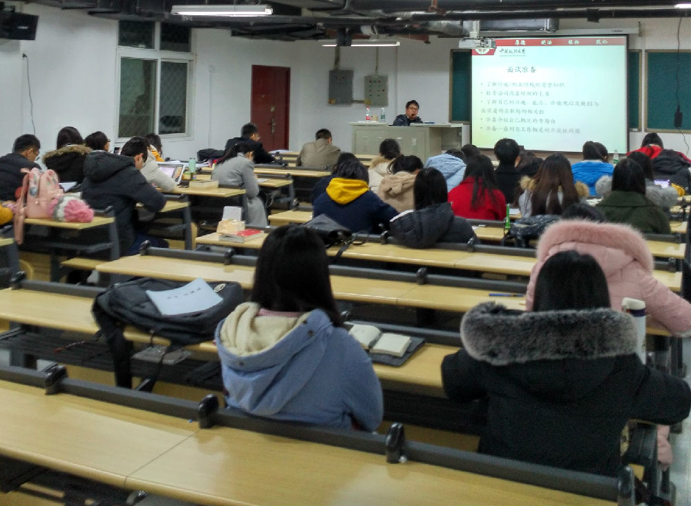 培训会主要针对目前同学们在就业中遇到的各种问题,如择业中的迷茫,简历制作,求职面试,往届学生就业去向,违约的后果,户口档案政策,毕业手续办理等等给大家做了详细讲解。