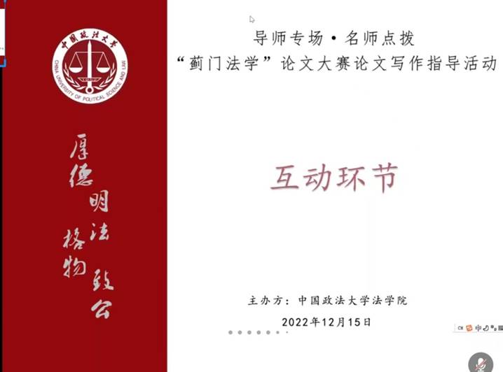 言之无文,行而不远。至此,导师专场·名师点拨——“蓟门法学”论文写作指导活动圆满结束。相信通过本次活动,在老师们的悉心指点下,同学们通过多读勤练,定能在“蓟门法学”论文大赛中提交一份满意的答卷。