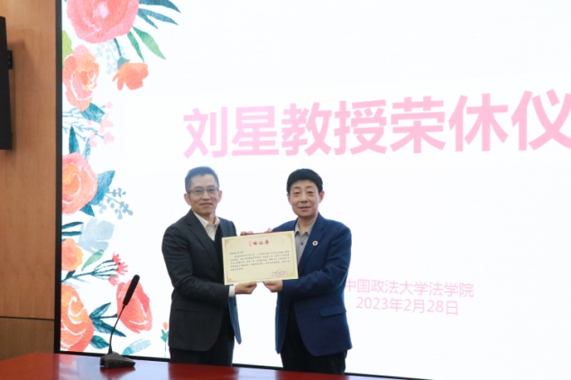 刘大炜宣读并为刘星教授颁发了荣休证书。