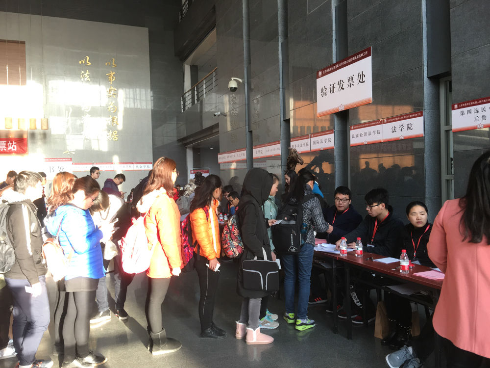2016年11月15日上午8点,北京市昌平区人大换届选举开始投票。beat365中国官方网站昌平选区全体师生在昌平校区逸夫楼一层大厅投票站进行投票。