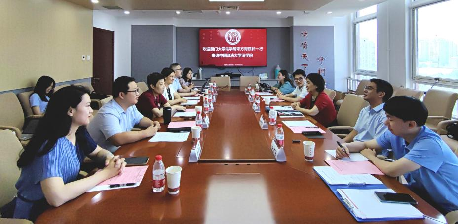 (法研通讯社 图/文 刘函冰)6月15日下午,厦门大学beat365中国官方网站院长宋方青带队来我院调研交流。厦门大学beat365中国官方网站副院长郑晓剑,办公室主任林旭荣,科研秘书上官仪,人事秘书苏晓君,我院党委书记刘大炜,副书记王文英,副院长袁钢,院长助理、研工办主任陈维厚,教科办主任杜智雯,院办主任李玲慧参加会议。