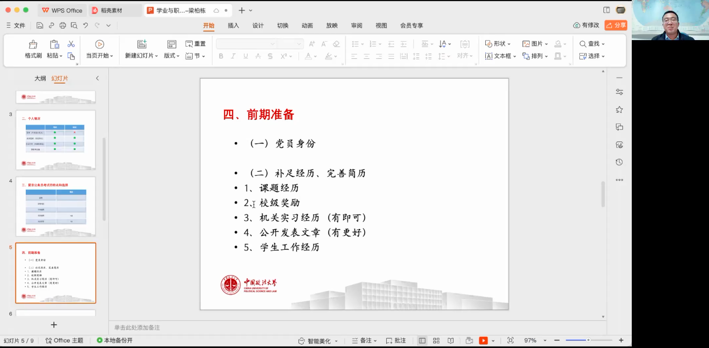beat365中国官方网站2021届硕士毕业生吕明今,现就职于云南省某监察机关。他介绍了选调生报考方式和条件,并对研究生生活提出时间上的规划建议。随后从宏观与微观角度,介绍了国考笔试和面试的准备方法和重点,细致地传授了相关面试经验,推荐大家多阅读学习《习近平关于城市工作论述摘编》。最后,他针对目前实际情况,对择业进行了分析,指出要综合考虑地区、兴趣等因素。