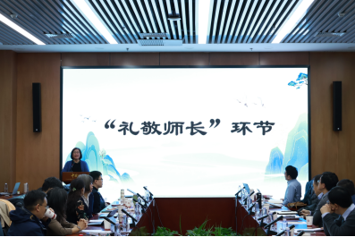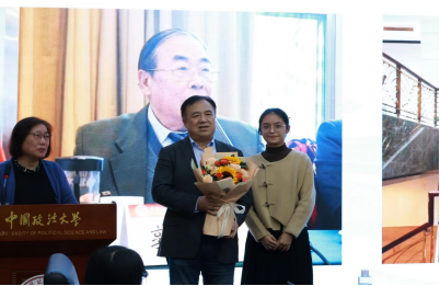 姜老师首先深切缅怀了已经去世一百余天的郭成伟老师,然后由研一新生张楠将第一束鲜花送给郭成伟老师在现场最年长的弟子姜登峰老师,以表达学术的薪火相传。