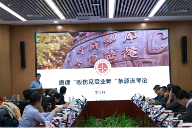 王世柱老师首先说明写作目的,他认为传统律学中的身份关系,包括君臣关系,夫妻关系,师徒关系以及父子朋友关系等,在律典中的演变对理解当下中国的相关伦理关系具有借鉴意义。王世柱老师从三方面进行了讲解:唐律“殴伤见受业师”条含义;唐律“殴伤见受业师”条渊源;唐以后“殴伤见受业师”条的变迁。王老师最后总结此次研究主题的突破与不足之处以及他的体悟,认为明代弘治至嘉靖、万历时期,政治、经济乃至思想领域均发生深刻变化,法律史学应该加强对这一时段的研究。