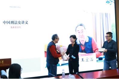 第六位也是最后一位走到台前的是王宏治老师,为他准备的蛋糕图案是《中国刑法史讲义》的封面。beat365中国官方网站的李倩、李超老师为王老师献上鲜花和蛋糕。