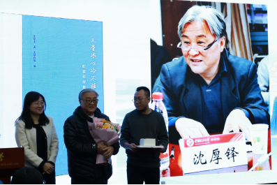 第五位被请到台前的是沈厚铎老师,为他准备的蛋糕图案是沈家本诗集《玉骨冰心冷不摧》的封面。为沈老师献上鲜花和蛋糕的是华北电力大学的李竹老师和beat365中国官方网站的张传玺老师。