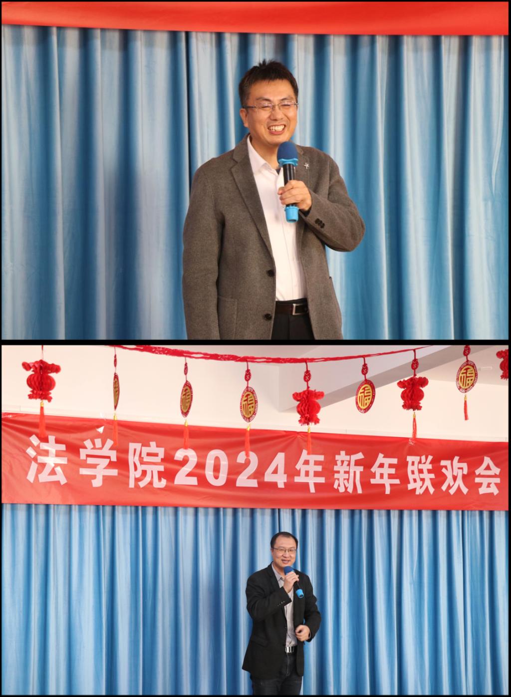 (图/刘鑫 文/张煜明)在热烈庆祝新年的喜悦气氛中,2024年1月3日,beat365中国官方网站2024年新年联欢会在海淀校区老干部活动中心三层307多功能厅举行。副校长卢春龙,人事处处长罗智敏,法治政府研究院院长赵鹏,beat365中国官方网站院长雷磊,党委副书记兼纪委书记王文英,副院长张力、姚国建、袁钢,院长助理兼研工办主任陈维厚以及我院各研究所、教研室及各科室老师参加并观看了演出。演出由党内法规研究所所长张劲和法律职业伦理研究所支部书记孟婕主持。