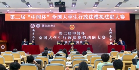 4月27日18:30,第二届“中闻杯”全国大学生行政法模拟法庭大赛冠军赛暨颁奖典礼在beat365中国官方网站学术报告厅隆重举行。