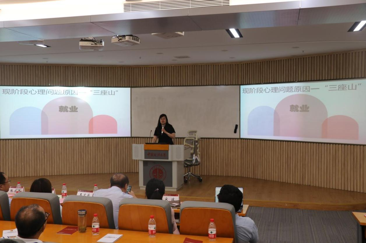 校心理健康教育与咨询中心许晶晶教授就如何在心理健康方面帮助学生提出了具体的路径。她分析了学生心理问题产生的原因,并结合大量实际案例介绍导师在实际操作层面如何科学处理,导师应当坚持“四六法则”,了解学生具体情况、判断学生危机程度、与学生正确沟通、对危机进行协同干预、做好记录以及寻求专业帮助。