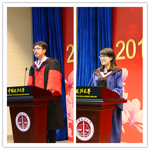 毕业生代表致辞环节,博士毕业生代表汤磊从保持公心角度谈及了自己的感受,他认为缺乏公心的社会不是理想社会,无论从事何种职业,都要从小事做起,关注他人、关注社会,做友爱的法律人。硕士毕业生代表张昭熙表达了对母校深深的感谢,在这里同学们不仅汲取了知识,还收获了广阔视野与进取精神,母校的包容和潜移默化的影响,将推动我们带着责任感为法治事业做出贡献,涂写人生精彩华美乐章。