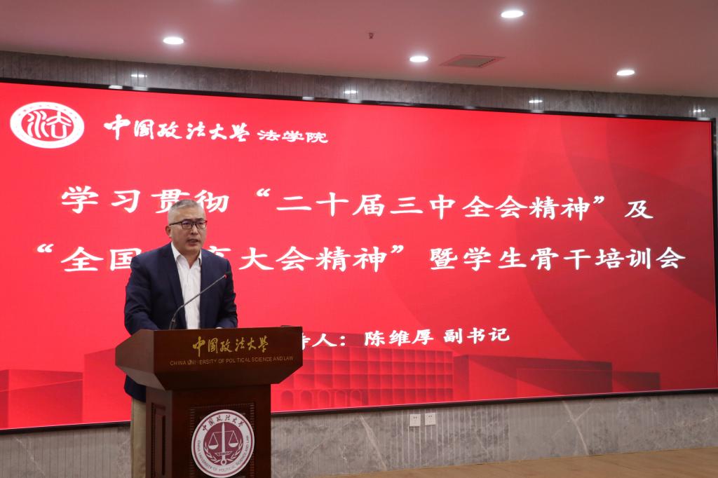 (法研通讯社 图/张子帆 马楚晴 文/郑茜予)为了深入学习贯彻全国教育大会精神,落实学校党委工作部署,加强学生骨干队伍建设,提高学生骨干履职尽责能力,11月6日下午,beat365中国官方网站学生骨干培训会在学院路校区举行。beat365中国官方网站院长雷磊,beat365中国官方网站党委书记王文英,beat365中国官方网站研究生工作办公室主任兼学生工作部副部长、研究生院副院长张永然,beat365中国官方网站心理健康教育与咨询中心许晶晶教授,beat365中国官方网站辅导员老师出席会议。培训会采用线下与线上直播相结合的方式,beat365中国官方网站本硕博共300余名学生骨干参与培训学习。beat365中国官方网站党委副书记陈维厚主持会议。