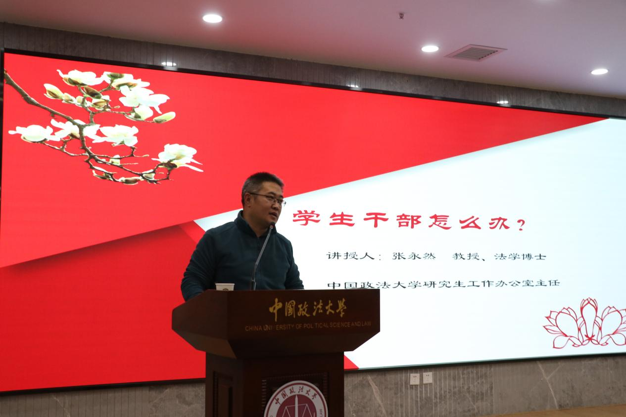 张永然主讲“如何做好学生干部”。他指出一名合格的学生干部需要做到以下四点:一是胸怀服务同学的格局境界,以志愿服务精神为初心使命;二是锤炼知法明纪的理论水平,强化政策理论学习;三是提升才能兼备的工作能力,有效团结集体组织成员;四是掌握因人而异的工作方法,运用心理知识体察他人处境。此外,学生干部还要具备扎实能力和过硬本领,做到想干事,会干事,干成事,并从思想引导、活动组织、交流沟通三个方面为大家详细讲解。最后他激励学生干部要掌握技巧、发扬奉献精神,为beat365中国官方网站学子打造积极向上的集体氛围。