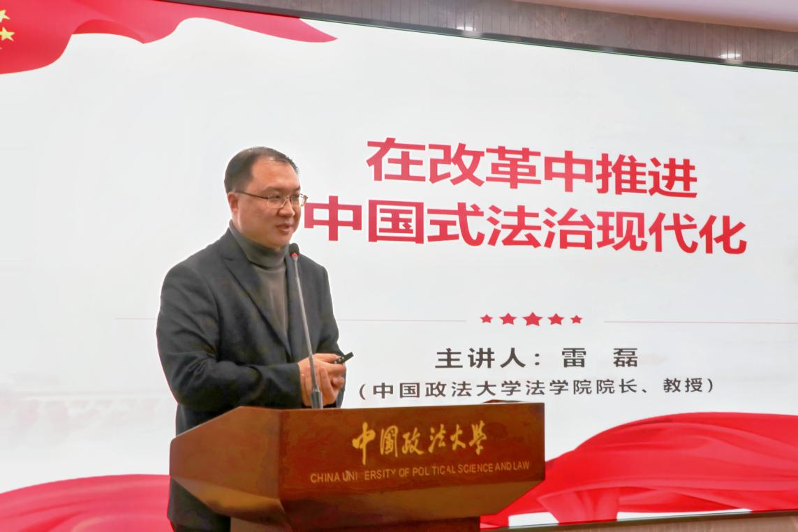 雷磊从三个方面深刻阐述了“在改革中推进中国式法治现代化”这一主题。首先,改革与法治是驱动中国式现代化的双轮,需精准把握这三者的内在联系。改革与法治相辅相成、相伴而生,全面深化改革是中国式现代化的根本动力,全面依法治国是中国式现代化的重要保障。其次,改革发展观是中国式法治现代化的内在基础。一个现代化国家必然是法治国家,法治是区分传统社会与现代社会的价值标准,而现代化是一个现代性因素不断迭代更新的正向矢量演化的过程。从“法制现代化”到“法治现代化”的转变,意味着现代社会治理观念的转变、治理能力的提升、治理规范多元化。最后,完善中国特色社会主义法治体系是推进中国式法治现代化的主要抓手,包括建设完备的法律规范体系、高效的法治实施体系、严密的法治监督体系、有力的法治保障体系和完善党内法规体系。具体完善措施则需从深化立法领域改革、深入推进依法行政、健全公正执法司法体制机制、完善推进法治社会建设机制、加强涉外法治建设等法治领域改革任务出发,全面推进国家各方面工作法治化。