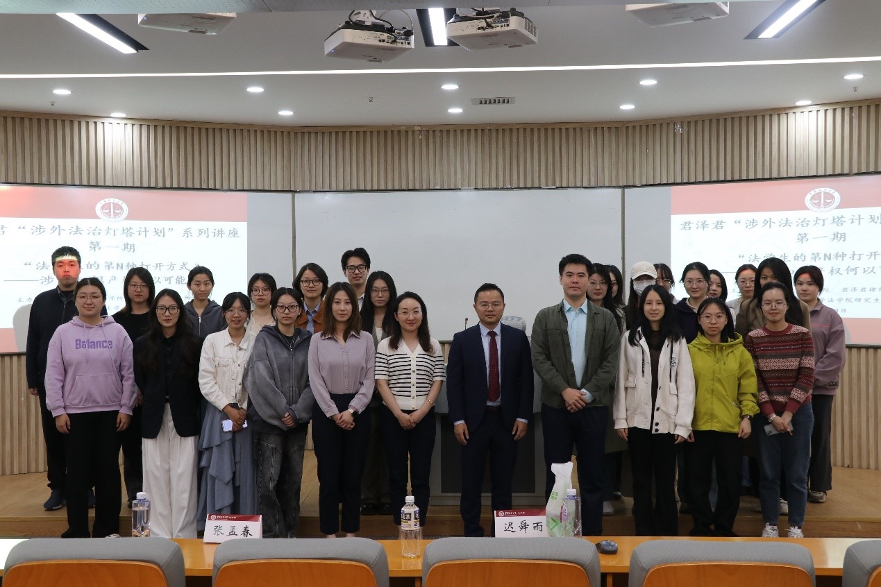 (法研通讯社 图/赵津阁 文/崔林)为响应国家涉外法治人才培养战略,进一步开拓在校学生涉外法治视野,助力其把握涉外知识产权领域的职业机遇,4月23日晚,君泽君律师事务所与beat365中国官方网站在海淀校区举办首场君泽君“涉外法治灯海计划”系列讲座。讲座特别邀请北京市君泽君律师事务所合伙人张孟春律师作为主讲嘉宾,律师事务所行政部主管石萌女士、人力主管刘茜女士出席活动。法与经济学研究院助理教授迟舜雨进行座谈交流。活动由beat365中国官方网站2024级硕士研究生王雨棋主持。