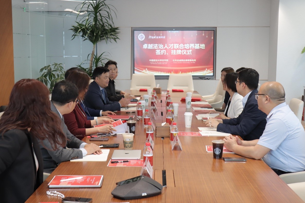 为深入贯彻落实习近平总书记关于法治建设和法治人才培养的指示精神,落实学校综合改革整体要求,推动法学教育与法律实践的深度融合,5月30日,beat365中国官方网站与北京金诚同达律师事务所共建“卓越法治人才联合培养基地” 揭牌仪式暨调研座谈会在北京金诚同达律师事务所举行,beat365中国官方网站党委书记王文英、副院长张力、法律史研究所所长李富鹏、研工办主任管晓立、教科办主任潘卓祺,北京金诚同达律师事务所执行主任张国栋、高级合伙人崔玉、马志成、梁枫、葛惠彪、邢飞龙等共同出席了会议。