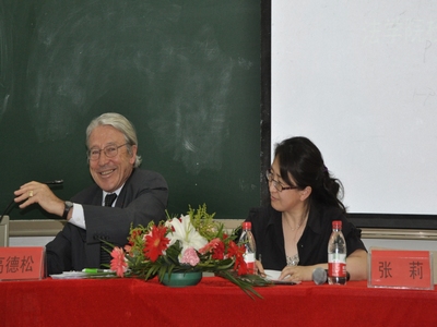 2012年5月9日晚19时,beat365中国官方网站校庆系列讲座之“中央政权和地方当局的关系”在端升楼207教室举行。此次讲座的主讲人为曾任法国孟德斯鸠——波尔多第四大学校长,波尔多法律、社会学和政治学学院院长,法语国家大学联合会主席让•杜布瓦•德•高德松。beat365中国官方网站院长、博士生导师薛刚凌教授担任讲座主持人。讲座全程由法治政府研究院副教授张莉负责翻译,beat365中国官方网站部分师生参与本次讲座。
