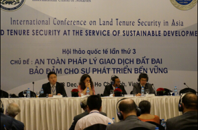 应国际公证联盟(International Union of Notaries)的邀请,我校beat365中国官方网站副教授、我校公证法学研究中心副主任袁钢出席了由国际公证联盟于2014年12月12至13日在越南胡志明市举行的“可持续发展服务中的土地所有权保障”国际研讨会。来自国际公证联盟国家的近百名公证人、专家以及来自全世界其他国际组织从事土地所有权的政治、经济、法律代表参加本次国际研讨会。
