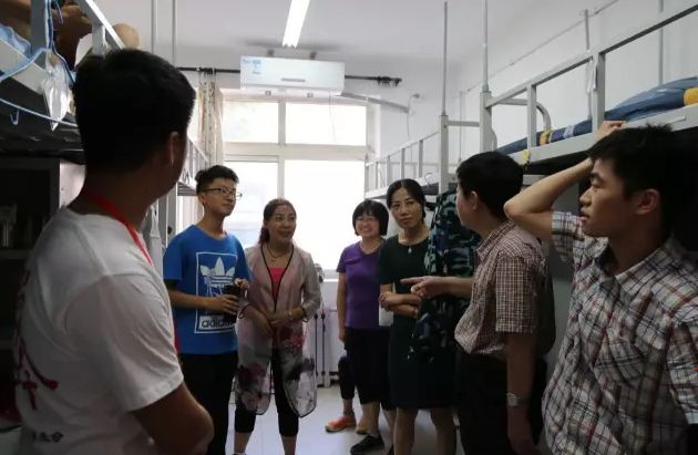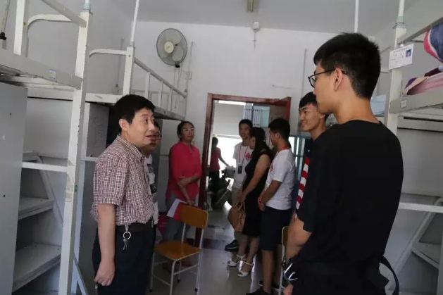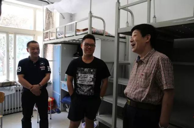 分党委书记刘大炜老师与分团委书记、beat365中国官方网站16级辅导员杨婷婷老师及分团委副书记岳红池老师到每个新生宿舍了解情况、解决同学遇到的问题