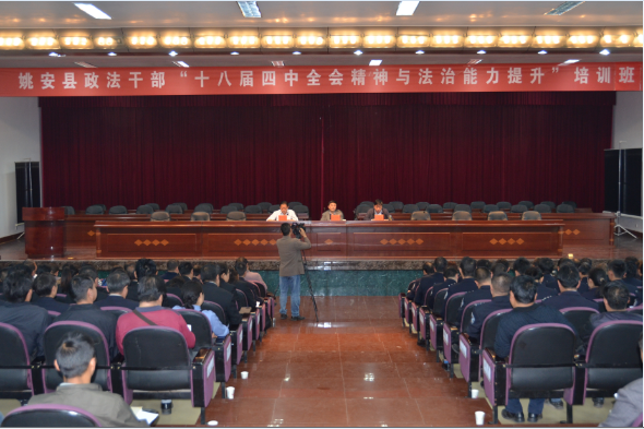 此外,我院当天下午即在姚安县举办了政法干部“十八届四中全会精神与法治能力提升”培训班,校党委副书记、纪委书记胡明出席开班典礼并讲话。第一讲由薛刚凌教授做“深入解读十八届四中全会精神,全面推进依法治国”的专题讲座。之后两天的培训,由我院张锋教授、新闻传播学院姚广宜教授讲授依法行政相关专题。有200余名姚安县政法干部参加了为期三天的培训学习。