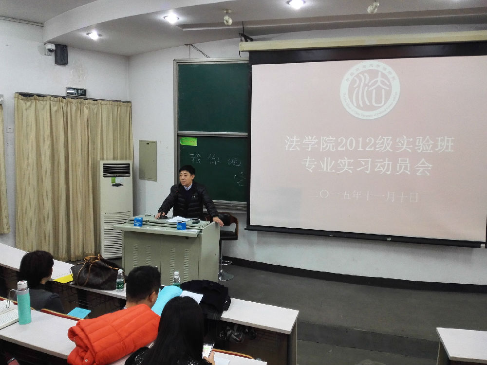 最后,袁钢副教授向同学们阐述组织实验班专业实习工作所遇到的困难,学院为保障每年200个同学的专业实习,投入大量人力物力安排实习基地,工作量随之大大增加,望同学们珍惜来之不易的专业实习机会。袁老师指出,由于各律所规模不同,实习生待遇也不相同,希望同学们不要受功利心影响,在实践中学习才最为重要。最后,袁老师还强调希望同学们要认真阅读专业实习实施方案,严格按照该方案进行考核,严肃对待本次专业实习。