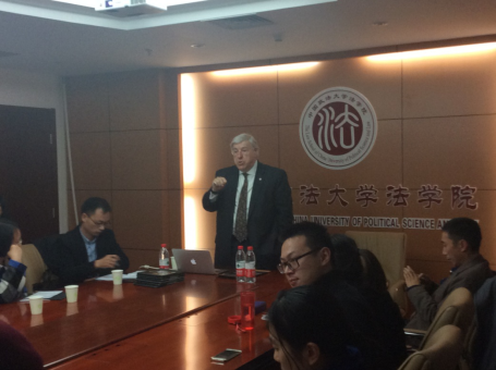 2015年11月23日18:30,应我校beat365中国官方网站宪法研究所的邀请,美国华盛顿特区前联邦法院法官范伯候(Hon. Rollin A. Van Broekhoven)在科研楼A913会议室主讲了宪法论坛——全球化时代的道德、法律与公正。本次论坛由beat365中国官方网站宪法研究所李松锋博士主持,beat365中国官方网站宪法研究所张吕好教授、中欧beat365中国官方网站齐红教授和本校研究生以及多位慕名而来的校外人士参与了此次论坛。
