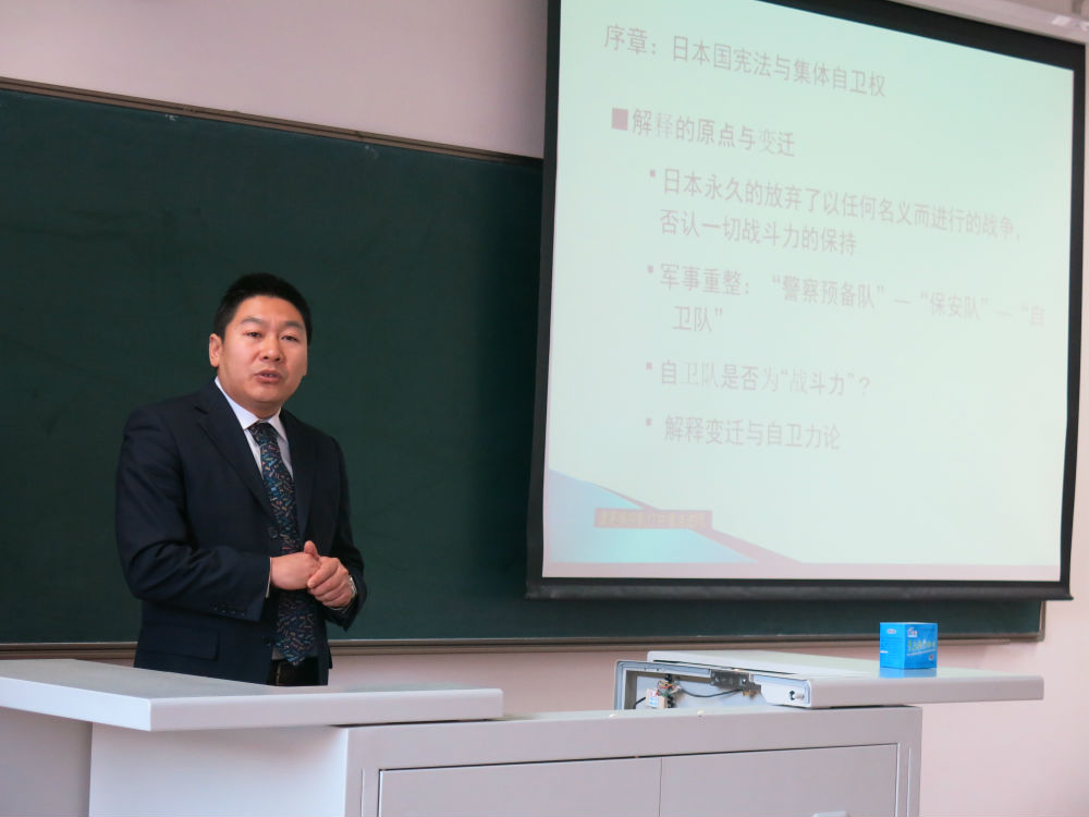 首先,张连凯老师就“日本国宪法下的集体自卫权”这一主题进行了为时二十分钟的授课展示,从目前日本关于集体自卫权的热烈议论入手,以宪法学的观点展开审视,整个讲授过程结构完整、一气呵成。