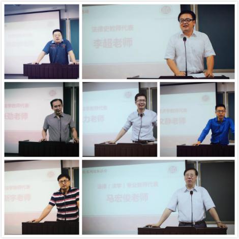 在各专业导师代表发言环节,法理学导师代表陈景辉,介绍法理学专业傲人办学成果后,告诫同学们认真对待学术,毕业时的论文答辩将极为严格。法律史导师代表李超从法律史专业的建设、发展历程讲起,提醒同学在校努力学习,并祝愿大家在三年之中能够学有所获。宪法学导师代表张劲,对新生的到来表示感谢和欢迎,希望自己作为老师能在学生的成长之路上略尽绵薄。行政法学导师代表张力,从介绍本专业强大的师资力量讲起,规劝同学们在校期间多进行有效阅读、有效写作、与导师的有效沟通。军事法学导师代表冷新宇,指出学术之路需要不断坚持,凡事应早做准备抓住机会。法与经济学导师代表李文静,谈到法与经济学专业在办学师资、国际化水平方面有突出优势,希望大家把握好在校时间、提早规划。法律硕士导师代表马宏俊分别介绍教育、卫生、体育三个专业的办学传统、特点和优势,并勉励同学们总结前人经验、努力学习。