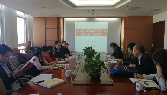 11月13日上午,湖北师范大学政beat365中国官方网站调研团到我院进行考察。参加座谈会的有湖北师范大学政beat365中国官方网站副院长黄本莲、汤林弟,法学系主任叶菁、公共管理系主任喻亚平等,我院副院长许身健,法律职业伦理教研室主任刘晓兵,研工办王家启、王敬妍等参加座谈会。