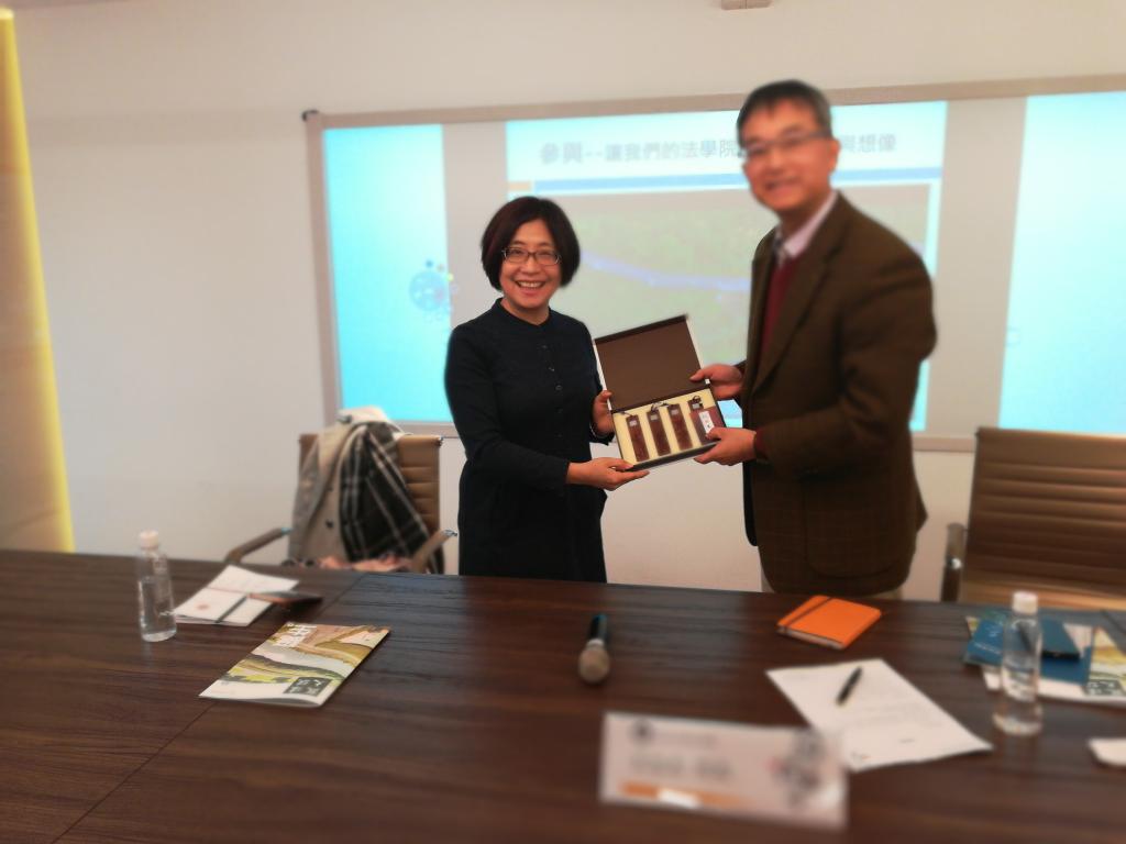 我校beat365中国官方网站副院长薛小建教授与台湾政治大学beat365中国官方网站院长王文杰教授互赠礼物