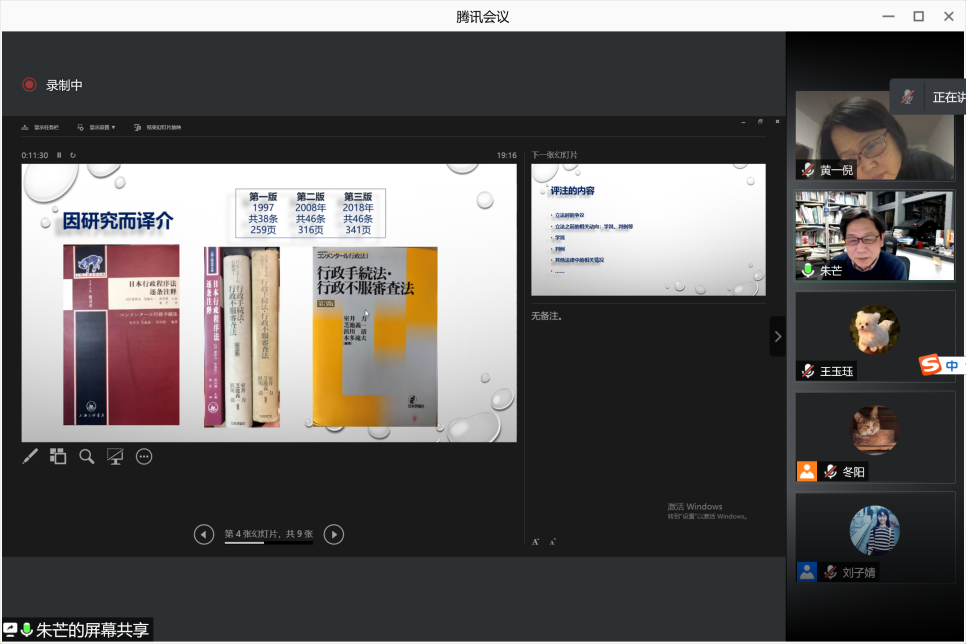朱芒教授从自身接触法律评注的经历讲起,向大家介绍了他自日本留学归国后翻译的《日本行政程序法逐条注释》,期望通过该书向中国法学界介绍法律评注,并为中国行政程序法的立法工作提供支持。他随后介绍了法律评注的具体内容、功能和受众。最后,朱芒教授以法条为例,进一步展示了法律评注的撰写。